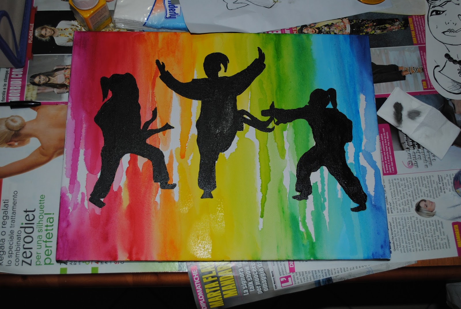 Finalmente posso postare il quadro che mi hanno commissionato per un compleanno. Spero vi piaccia!!! La mia impronta la si vede dal colore e dalla tecnica usata. Essendo un quadro per una ragazza ho dovuto modificare tutto, in modo da rendere tutto, nel complesso, un quadro più delicato nonostante il tema fosse il karate. Sinceramente è un arte di combattimento che mi ha sempre affascinata, sopratutto perchè io al contrario del karate sono un tipo molto impacciato e scordinato.