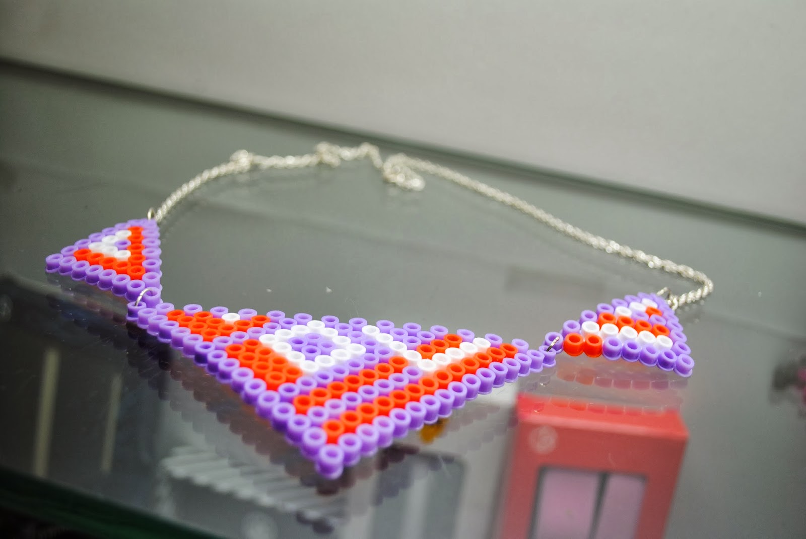 Come potete notare ho creato anche una nuova collana pyssla. Più elegante rispetto alle altre e per questa non ho seguito nessuno schema se non il mio, cioè attraverso il metodo dell'improvvisazione.