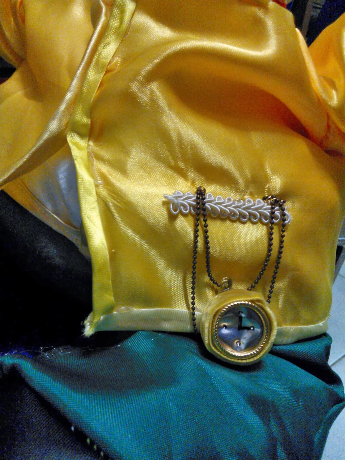 - Crea la giacca con il tessuto di raso giallo.