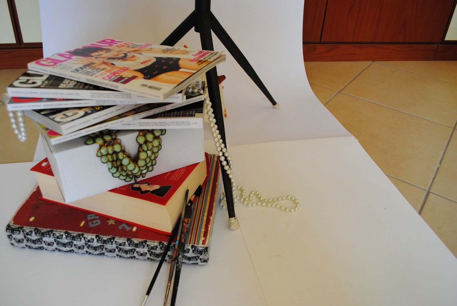 L'altro giorno ci stavo pensando, (non mi piacevano per niente le foto sul mio shop) così ho deciso di organizzarmi per fare, per quanto possano essere le mie possibilità di creare uno "studio fotgrafico".