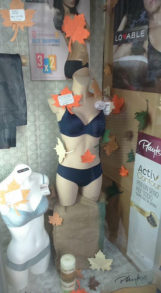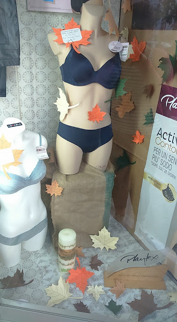 Quest'anno per il mio negozio di Merceria ho optato per il classico e sempre apprezzato effetto autunno, con le foglie e i colori tipici di questa stagione.